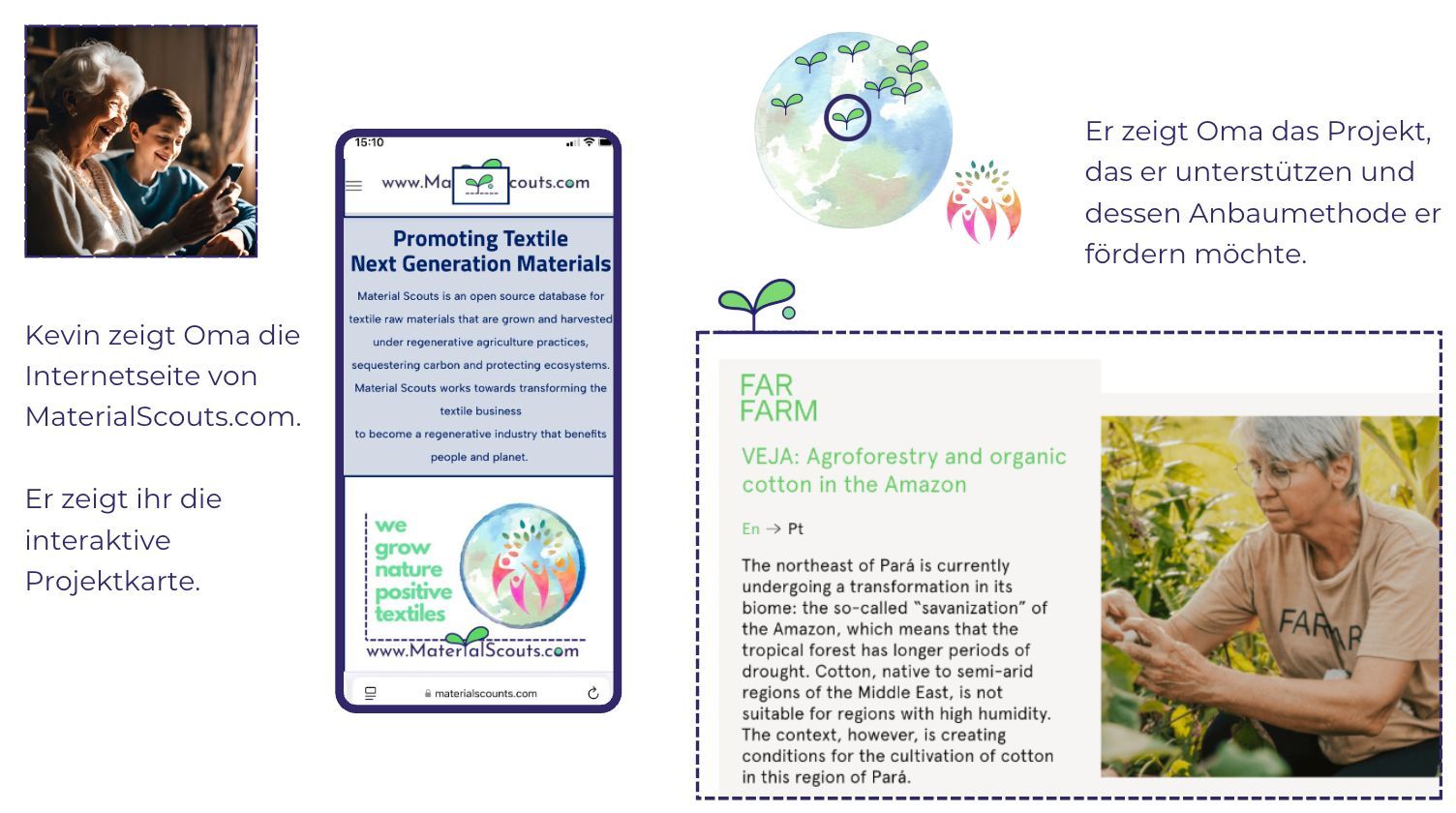 - Anbindung an eine digitale Geo-Kartierung von Plantagen und Feldern mit regenerativen Anbaumethoden (Pflanzenkohle, textile Fasern aus Agrarabfällen)