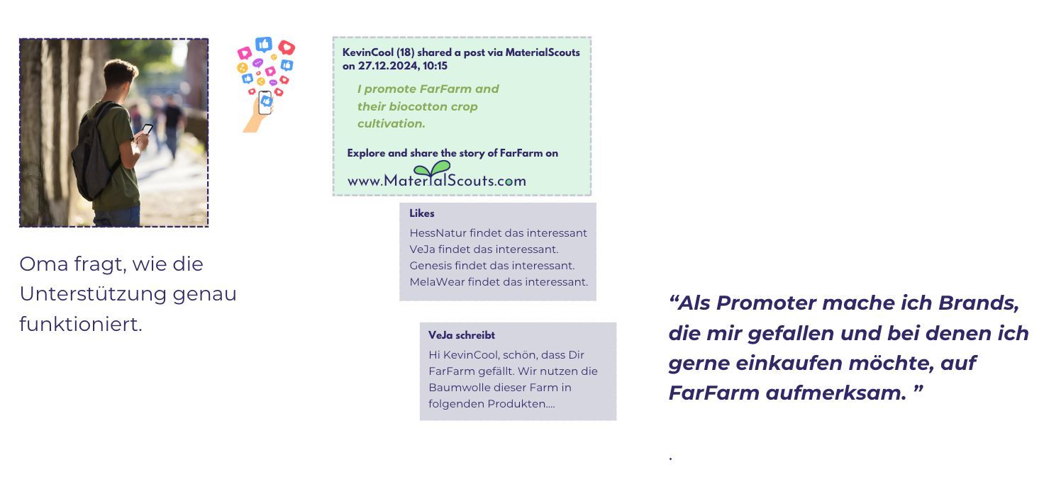Wir wollen die erfolgreiche Verbreitung klimaneutraler und naturpositiver Fasern und finden dafür die passenden Förderungs- und Vertriebswege.